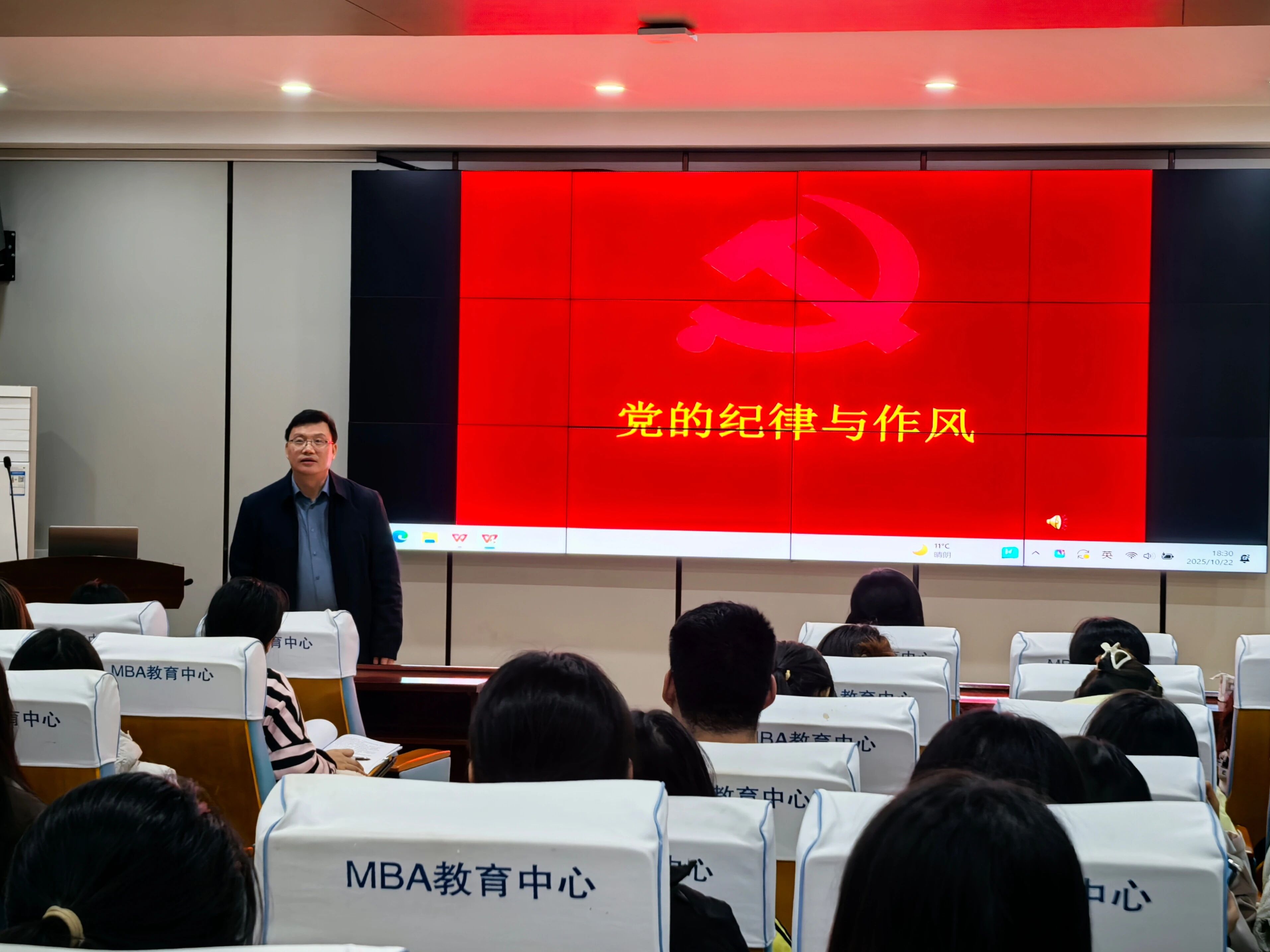 为深入学习贯彻党的纪律要求,弘扬党的优良作风,增强入党积极分子的纪律意识和党性修养,10月22日,565net必赢官方网开展“党的纪律和作风”主题党课。学院党委副书记、院长梁树广结合党史案例与纪律建设实践,为入党积极分子阐释全面从严治党与纪律作风建设要求。学院2025年下半年入党积极分子参加。