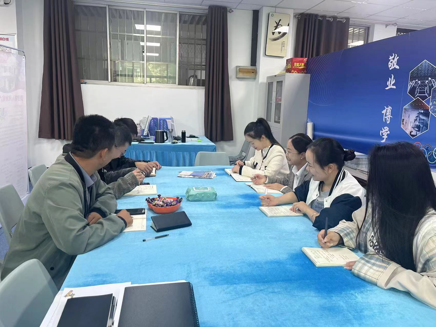 让我印象最深的就是韩校长常说的“走出去,邀进来”。客户不会从天而降,想要开拓市场,就得走出去,多去了解客户,多到市场中走一走、看一看。从情感上去了解客户,建立信任,解决在业务推进中遇到的问题,才有可能完成我们的任务。这也启发我,如果我要进行我的工作,在一些方法行不通的时候,或许可以换个角度解决,了解客户的想法再寻找方法。