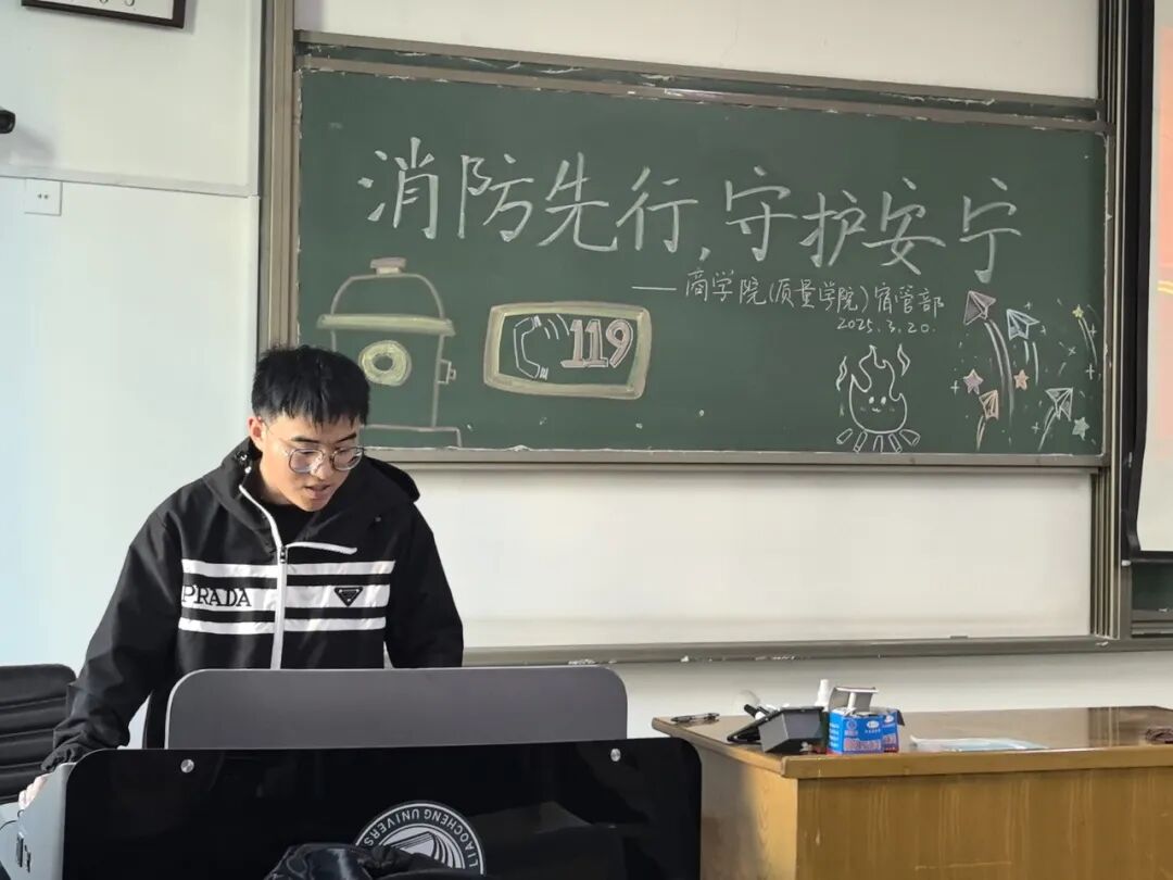 为筑牢校园安全防线,强化师生消防安全意识,3月20日,565net必赢官方网以2025年春季全国高校消防安全公开课为契机,在301室举办消防演练活动,学院学生会宿管部干事牛安毅担任主讲人,2023级、2024级学生代表参加活动。