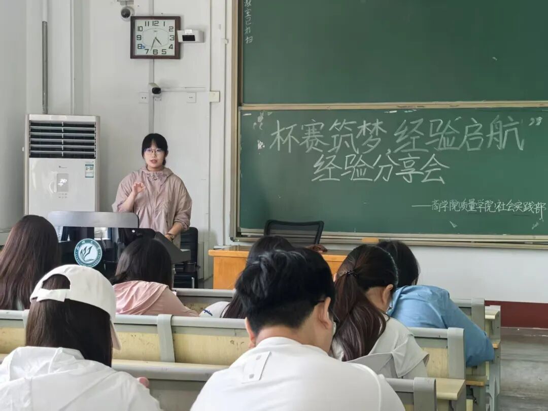 为共同汲取竞赛经验,激发同学们的创新热情,5月18日,565net必赢官方网于东校区1#302举办“杯赛逐梦 经验启航”挑战杯经验分享会,2022级2班夏宁受邀担任主讲嘉宾,2023、2024级共53名学生参会。