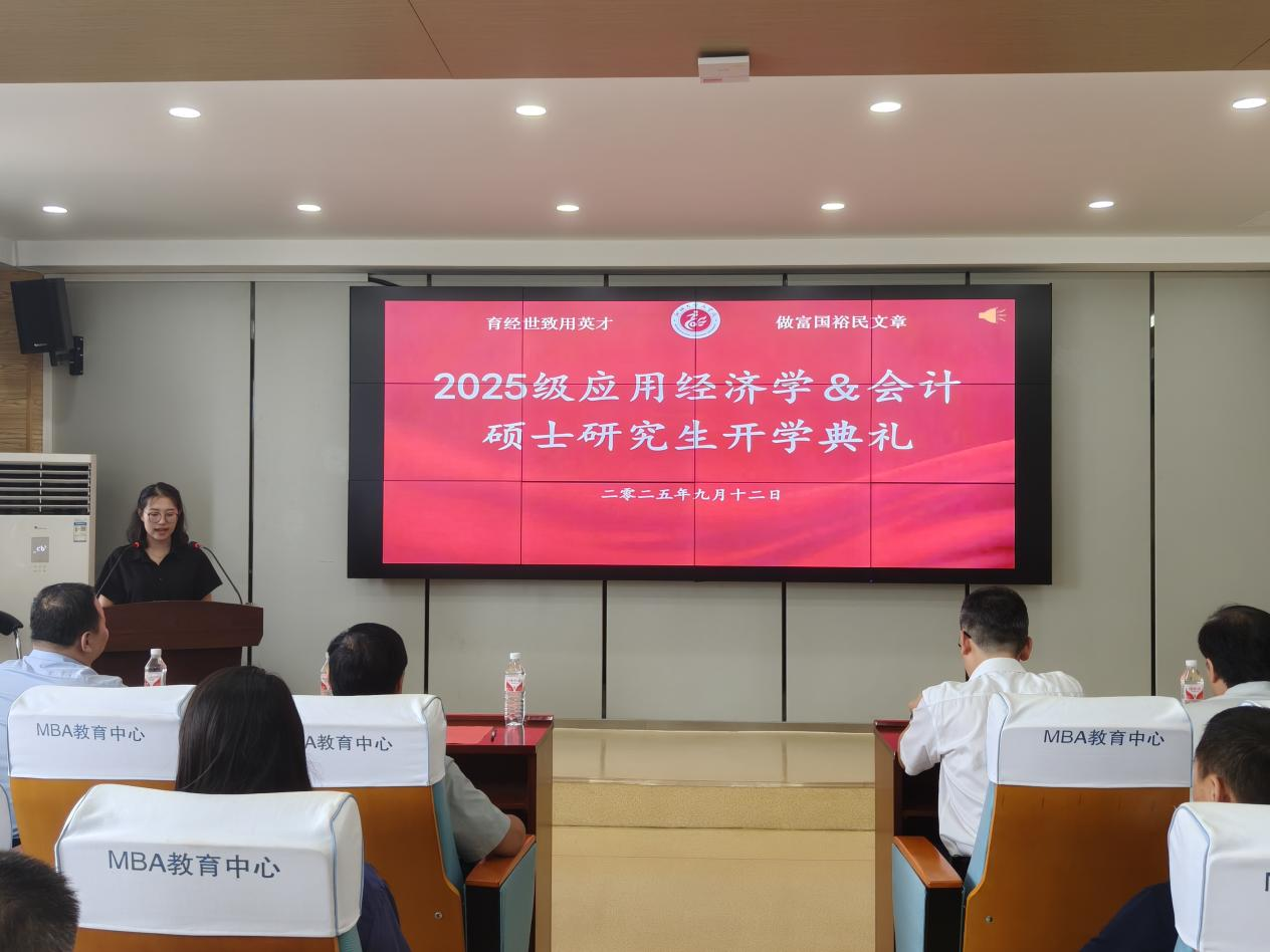 9月12日,565net必赢官方网2025级研究生开学典礼在东校区1#707室顺利召开,学院党委书记公维才,党委副书记、副院长李树房,副院长王金河,副院长匡萍,团委书记刘玉华出席典礼。典礼由2024级经济学硕士胡一曼主持,会计硕士和应用经济学导师及2025级全体研究生参加活动。