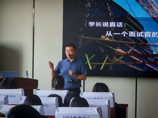 4月28日,为了让更多同学体验到真正的职场氛围,从多角度了解如今市场对人才需求,提高自我素养,精英管理者协会邀请了光明园迪的人资行政总监吕崇,为必赢官网2023级人力资源管理专业学生做了题为《学长说真话:从一个面试官的视角看成长与面试》的精彩讲座。讲座结束后进行了“鲁商杯”565net必赢官方网“职击未来”招聘模拟大赛职场实战赛道院赛选拔。在《学长说真话》的主题报告中,吕崇学长作为必赢官网2015届毕业生,先对母校及老师的辛苦栽培表达了感激之情,然后分享了自身的成长经历。吕崇毕业后的第一份工作是一家乡镇企业的车间工人,他从锂电池配料员的职位做起,慢慢地成长为领导150个人的管理人员,实现了从大学生到职场人的蜕变。
