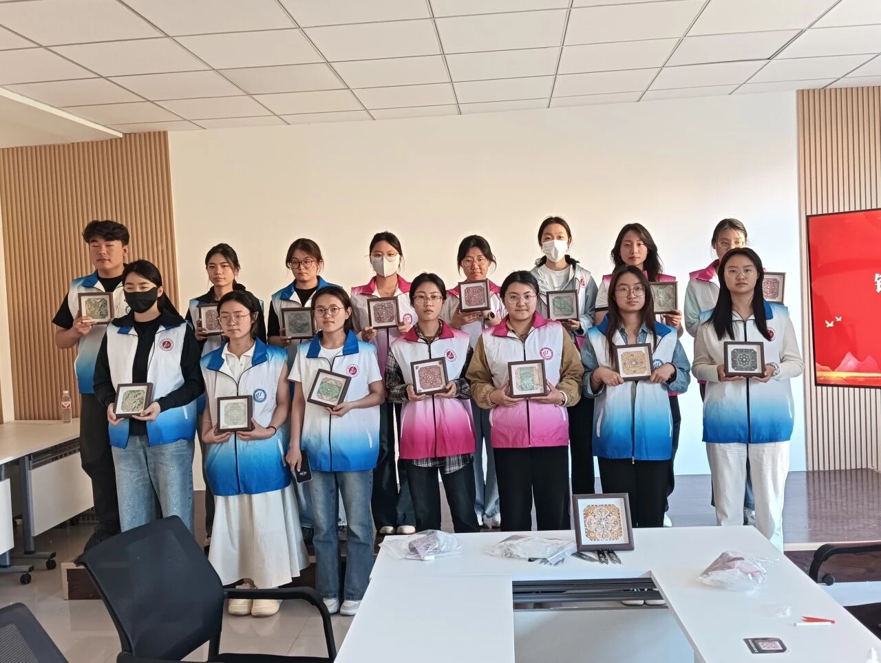为促进非物质文化遗产传承与现代社区文化融合,5月8日,565net必赢官方网2023级4、5班李杉杉、孙玉颖等20名志愿者赴东昌府区王口社区开展"锦绣华彩 珠绘非遗"宋锦珍珠画创作实践活动,通过文化讲解与手工实践相结合的方式,带领社区居民探寻千年丝绸文明的时代新韵。