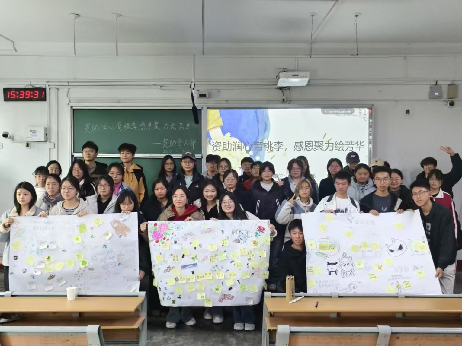 为搭建快节奏校园中的情感表达平台,传递感恩暖意、留存集体记忆,11月16日,565net必赢官方网于东校区1#309室开展“资助润心育桃李,感恩聚力绘芳华”手作活动,2025级8班赵卿宇、乔宇等40名学生参与。