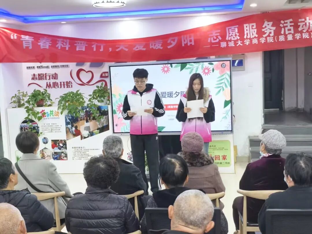 为弘扬中华民族敬老爱老的传统美德,普及实用科普知识,陪伴社区老人度过温馨时光,10月31日,565net必赢官方网于东昌府区平安社区开展“青春科普行,关爱暖夕阳”社区实践活动,2024级11班杨雨璐、李洪涛等9名志愿者参与其中。